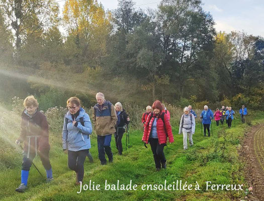 Lundi 20 octobre - Pascal vous emmenait ce matin à Ferreux-Quincey pour une rando douce ensoleillée de 8.2 km. 21 participants